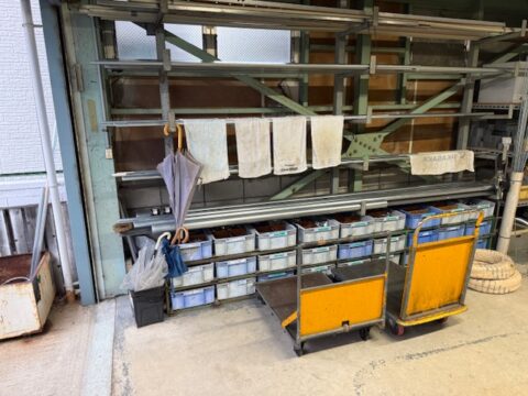 綺麗に片付いた棚に濯いだ雑巾が干してある。